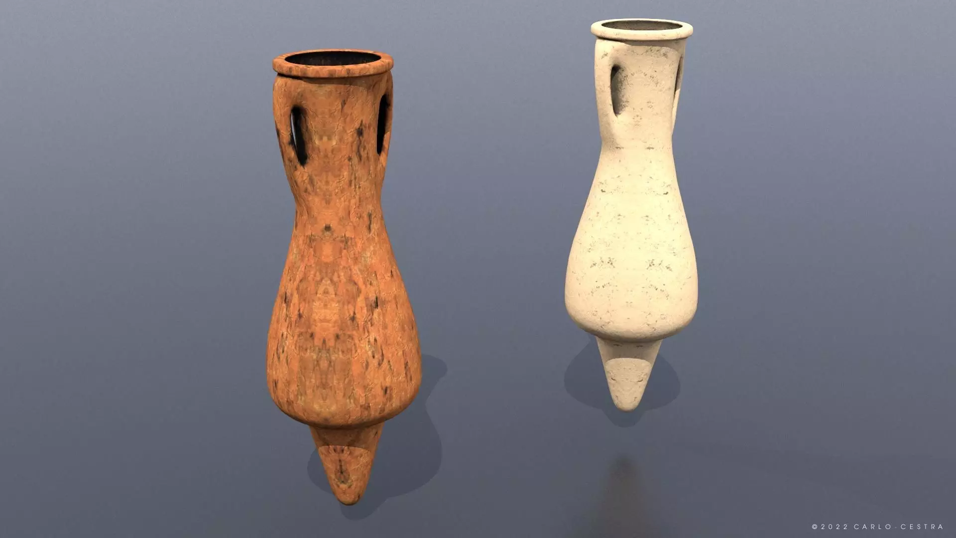 Two different sets of textures are included (color, ambient occlusion, roughness, specular, normal and bump) to get the same amphora with two different materials