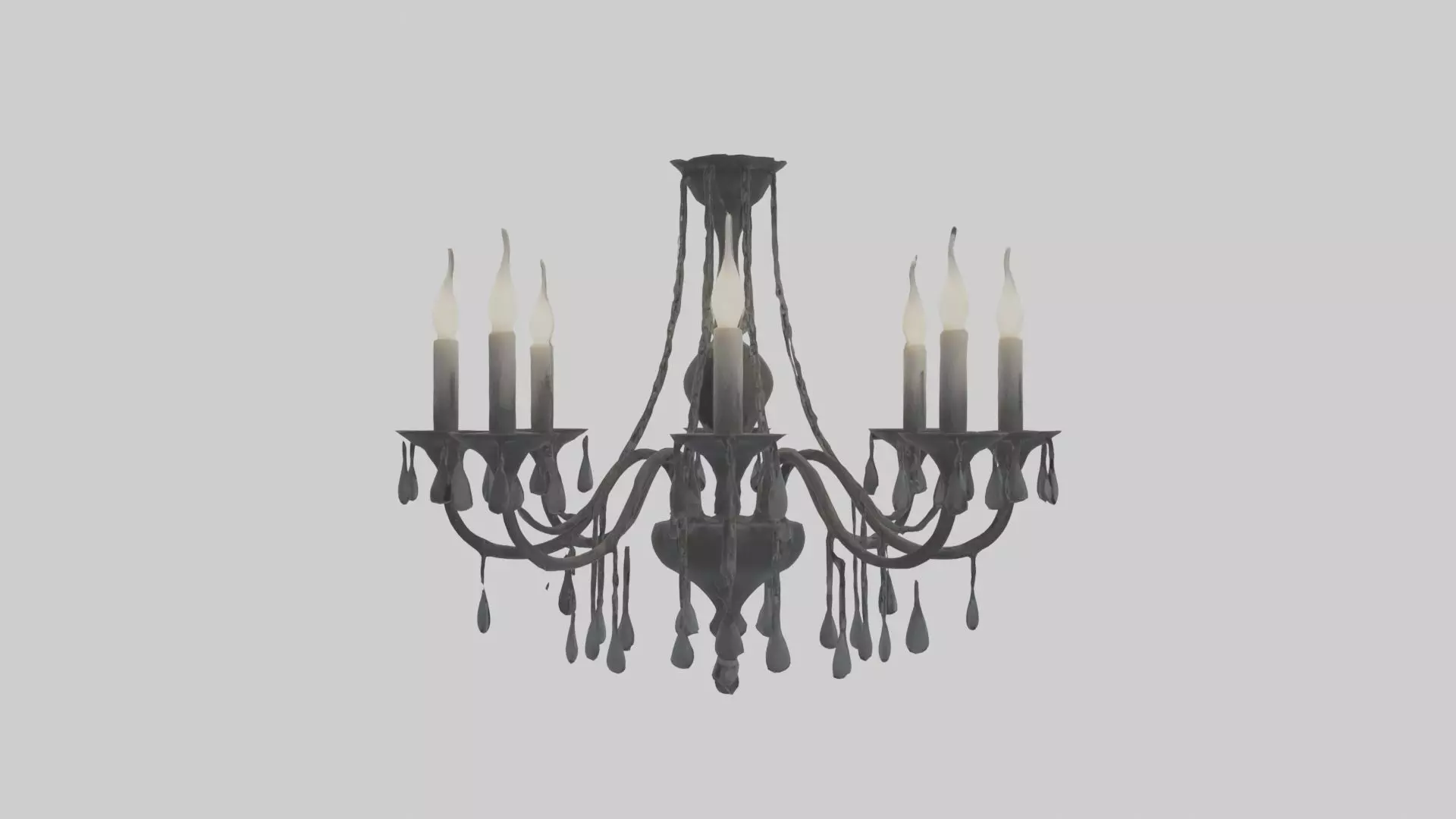 Eerie chandelier, 3D model, gothic design, haunted house, horror decor, candles, flickering light, supernatural, dark crystals, spooky, fantasy environment, eerie atmosphere, Victorian, ghostly, mysterious