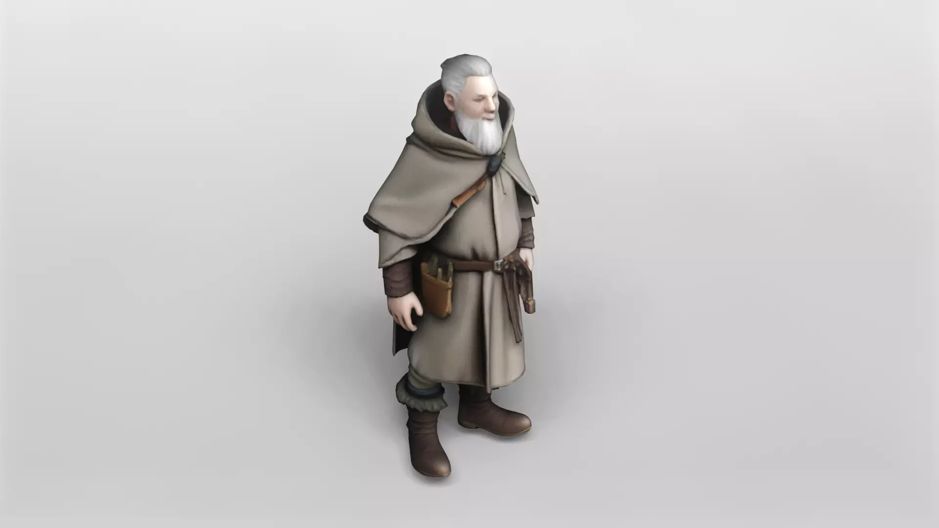 This highly detailed 3D model represents an elderly medieval sage, characterized by his long white beard, wise expression, and traditional attire. The model is meticulously crafted to showcase intricate fabric folds, realistic textures, and authentic accessories such as a pouch and belt, enhancing the overall historical feel. The sage's cloak and layered clothing add depth and complexity, making it suitable for use in fantasy, historical, or RPG-themed projects.The model is fully textured, with high-resolution maps included to ensure realistic surface details and material properties. The textures enhance the fabric's weave, leather accessories, and skin tones, contributing to a lifelike appearance. This makes the model ideal for close-up renders or animations where detail is paramount.Available for download in the versatile GMB format, this model is compatible with a wide range of 3D software and game engines. Additionally, it is offered in FBX format, providing flexibility for users who prefer this widely supported file type for animation and integration into various pipelines.Whether you are a game developer, animator, or digital artist, this medieval sage model is a valuable asset for bringing historical or fantasy narratives to life. Its detailed design and multiple format options make it easy to incorporate into your creative projects with minimal setup.