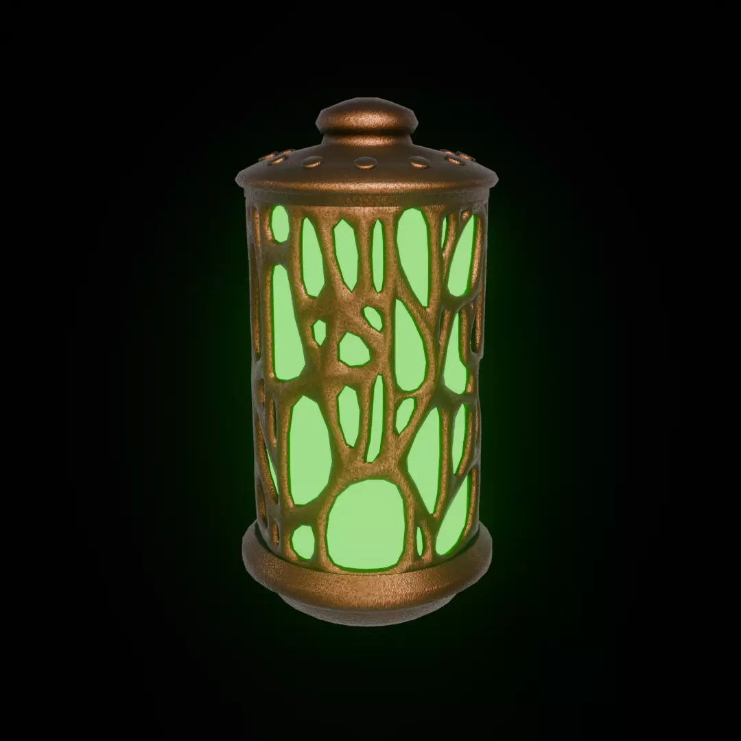 3d model of a fantastic lantern. The model has the base color, roughness, and environmental occlusion maps. It has the uvs unfolded. The statistics of the model are as follows: Vertices: 6174 Tris: 12524