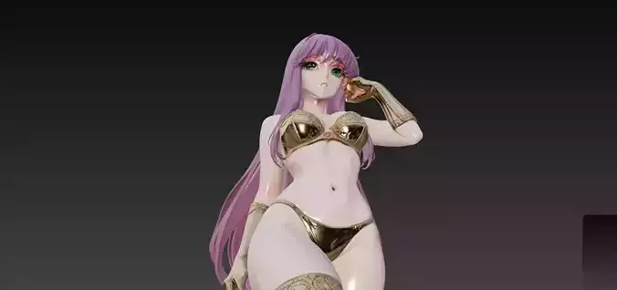 DescriptionA detailed, stylized 3D printable statue of a beautiful fantasy goddess. This model features a female character with long purple hair, wearing an elegant golden bikini armor set with matching gloves and leg guards. She is captured in a graceful pose. This figurine is ideal for collectors of anime, manga, and fantasy characters, and is optimized for 3D printing.