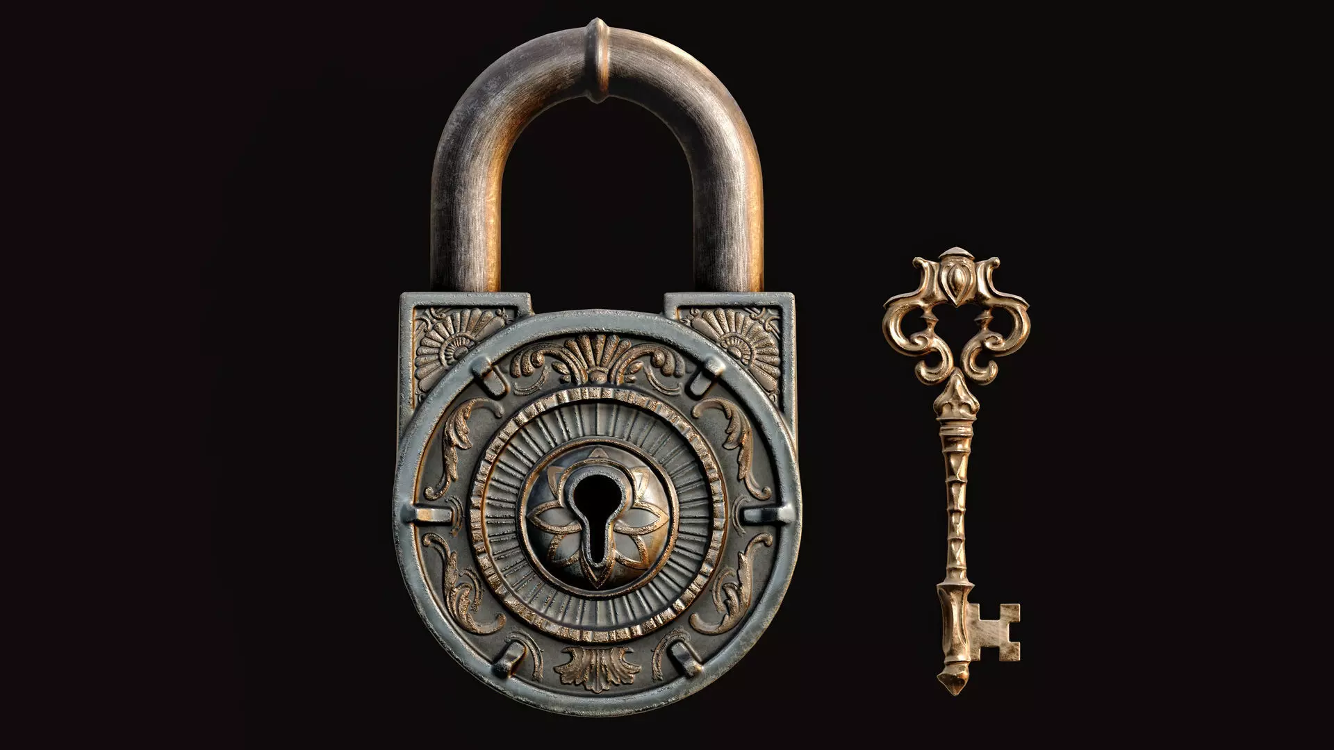 Fantasy Padlock with Key 2 Low-poly 3D model Low-poly 3D model