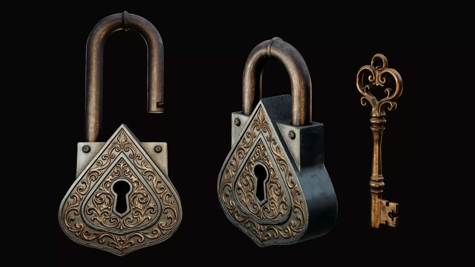• High-quality game-ready fantasy padlock with a matching key