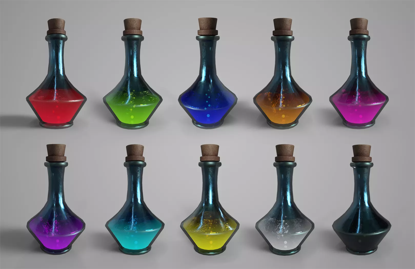 Each potion comes in a high-quality stylized bottle with a glowing liquid core