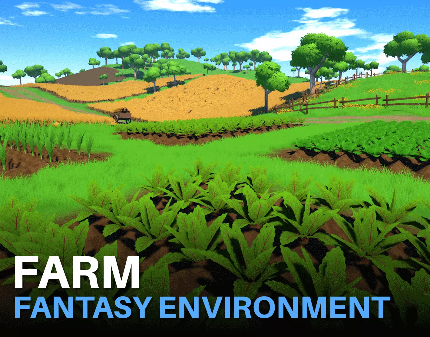 • props: crates, ridges, wheat, a beet, a cabbage, a carrot, an onion, a gate, a fence, a cart and a wheelbarrow