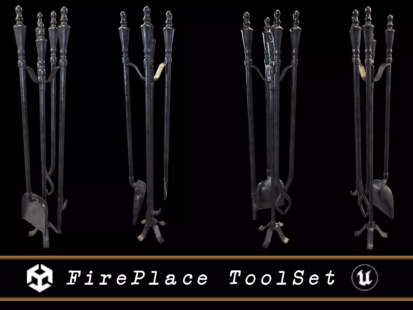 Fireplace Tool Set 3D Model. This model contains the Fireplace Tool Set itself