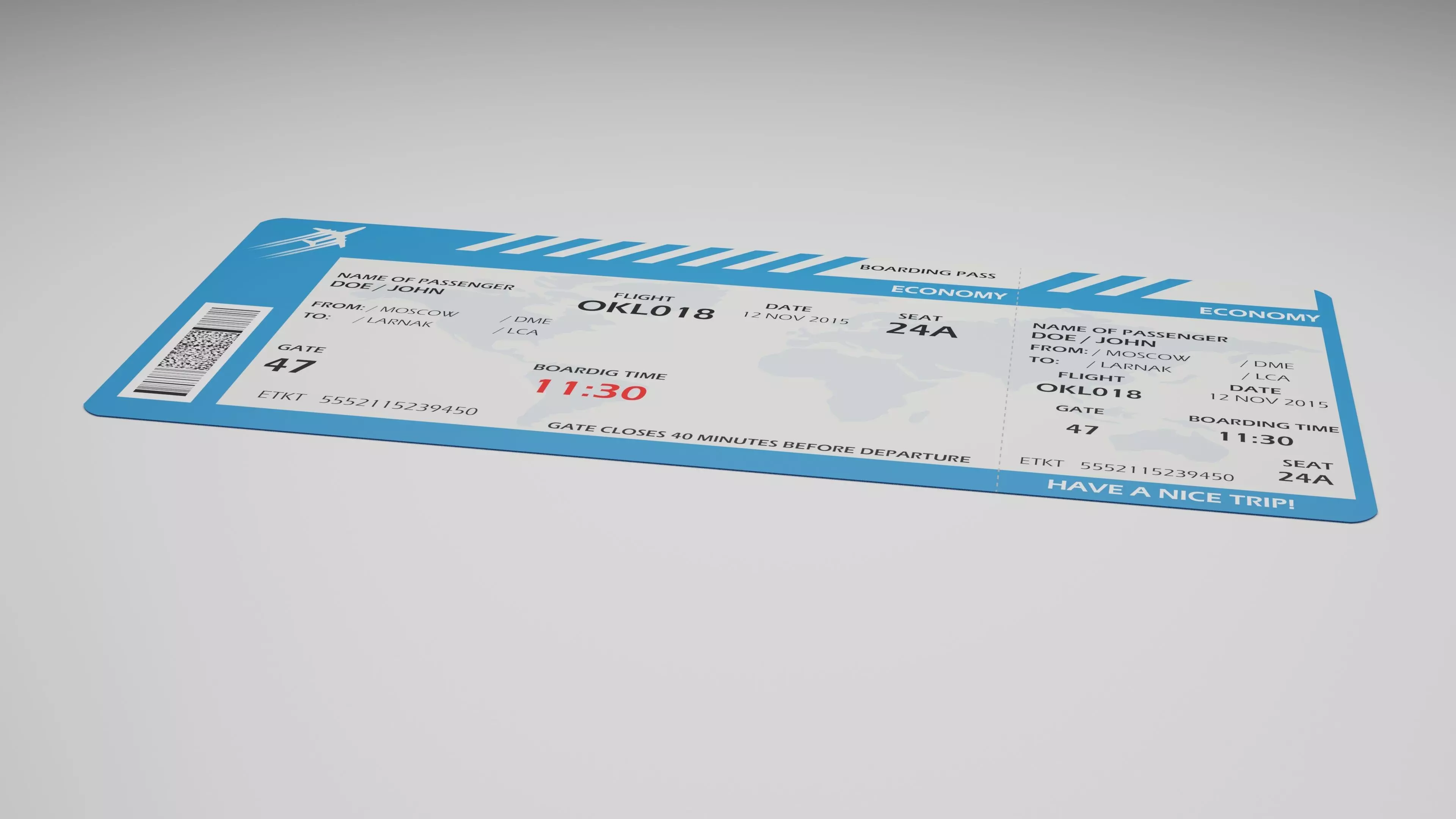 3D models of a flight ticket to edit. Made in Blender 2.92.