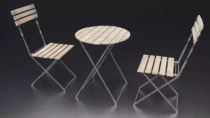 Folding Bistro Table and Chair Set Low-poly 3D model