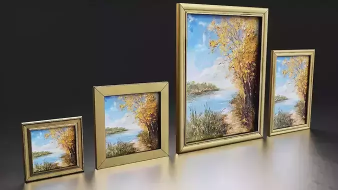 Framed Landscape Paintings Set Low-poly 3D model