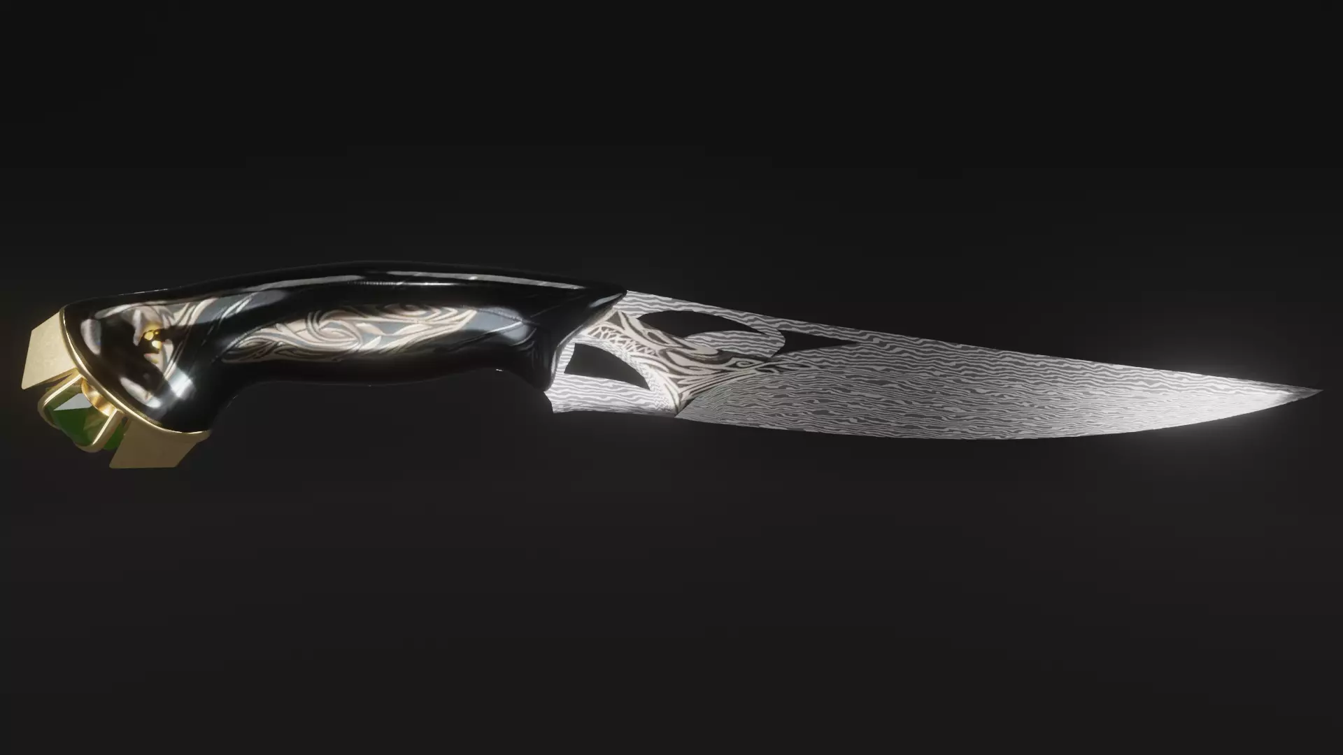 This is a knife made of damsucus steel, with a gilded handle holding an emerald at it's base. I've provided the model in seperate file formats and it's textures. This model was created based on an image that I found on Pintrest (https://www.pinterest.com/pin/985231157222530/)