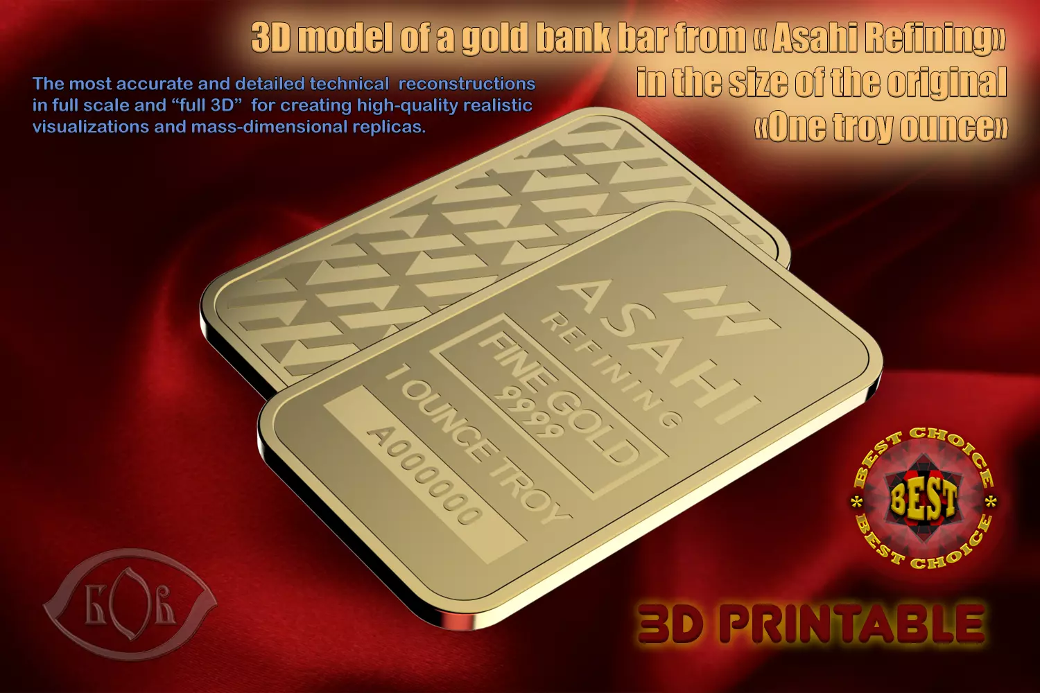 Introducing a high-quality 3D model of a bank gold bar from the American brand “Asahi Refining”