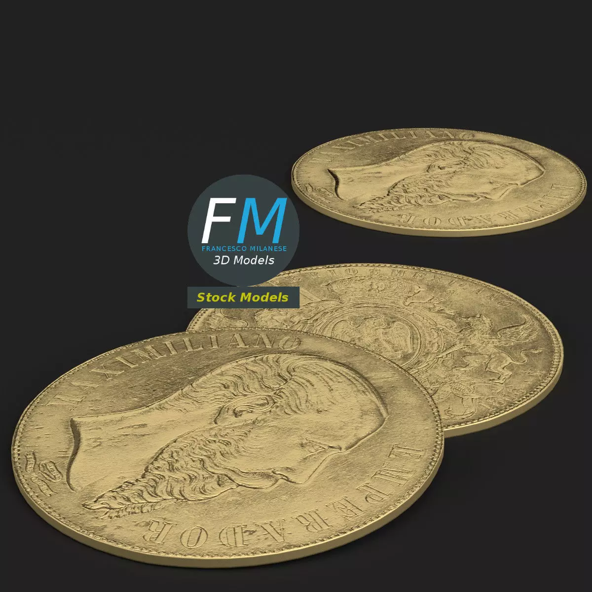 Stylized gold coins 3D Models. 4 individual objects, sharing the same non overlapping UV Layout map, Material and PBR Textures set. Production-ready 3D Model, with PBR materials, textures, non overlapping UV Layout map provided in the package.