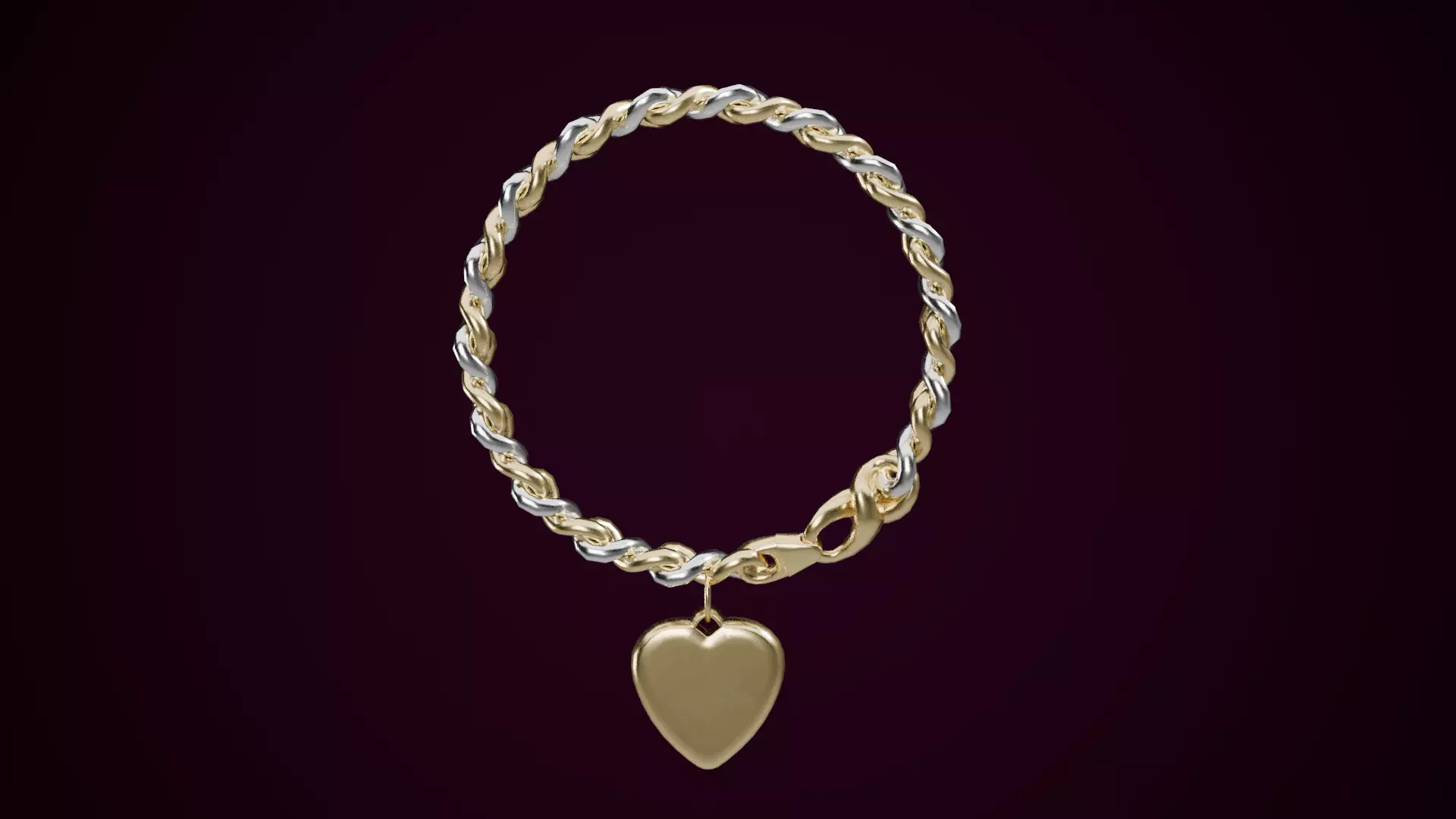 Gold Heart Tag Chain Link Bracelet Low-poly 3D model