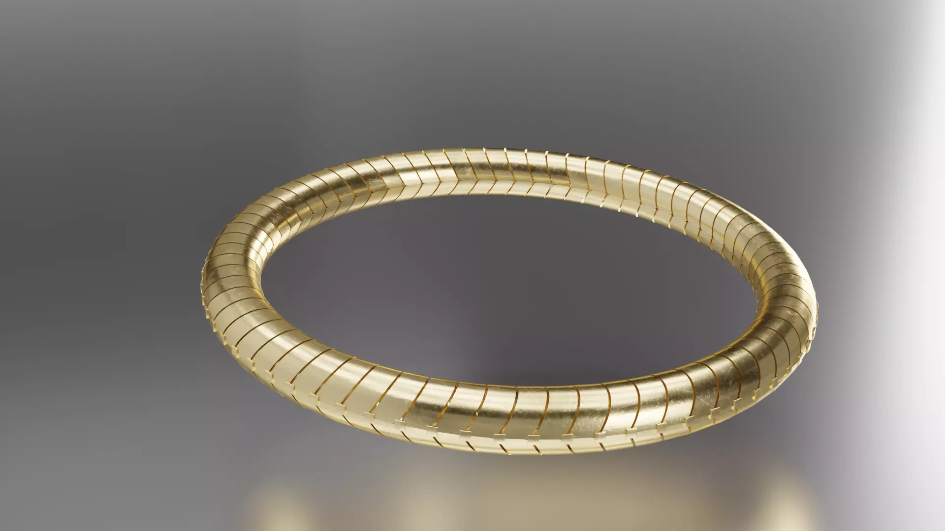This is a high-quality 3D model of a gold coil bracelet. It features a smooth, detailed design with realistic metallic shading. The model is clean, easy to use, and perfect for jewelry renders, product showcases, animations, or fashion projects. Ready for use in Blender, Cycles, Eevee, and other 3D software.