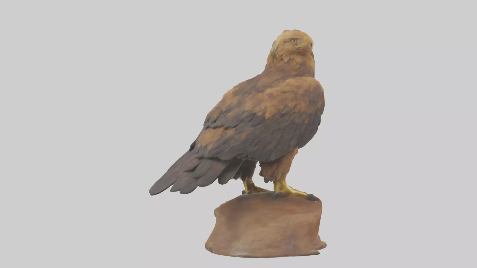 A highly detailed 3D model of a Golden Eagle perched on a branch, perfect for wildlife scenes, animations, and game assets. Available file formats: FBX, OBJ, STL, GLB, USDZ, BLEND.