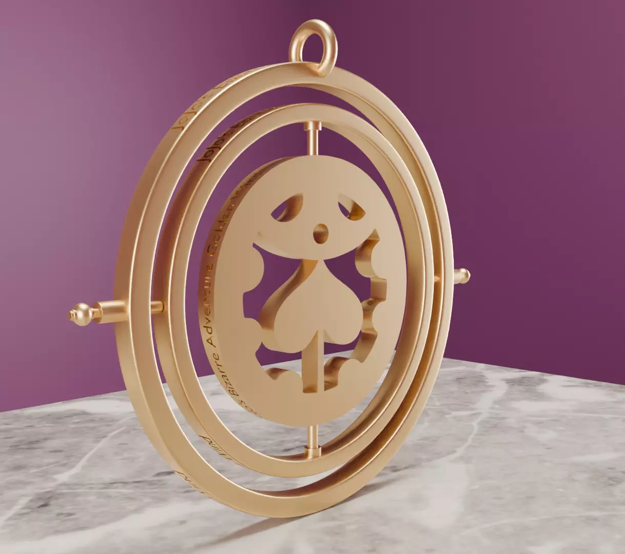 Model Overview:This pendant design captures the spirit of Golden Wind with its elegantly interlocking triple-ring structure, built for both aesthetic appeal and realistic motion simulation. At the heart of the pendant is a stylized emblem that combines JoJo-inspired motifs with the spade symbol—representing fate, direction, and strength. The inner medallion and surrounding rings are suspended using precision-engineered rods, which allow each ring to rotate independently—mimicking a gyroscope, adding dynamic realism for animation or product visualization.