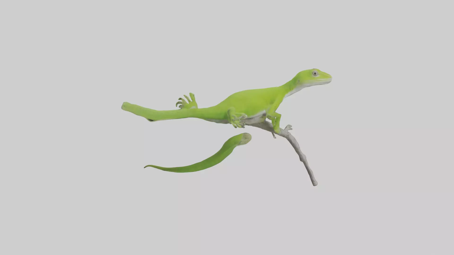 Açıklama: Green Anole 도마뱀의 등반 자세를 세밀하게 표현한 3D 모델. 애니메이션, 게임, 교육 프로젝트에 적합. 사용 가능한 파일 형식: FBX, OBJ, STL, GLB, USDZ, BLEND.