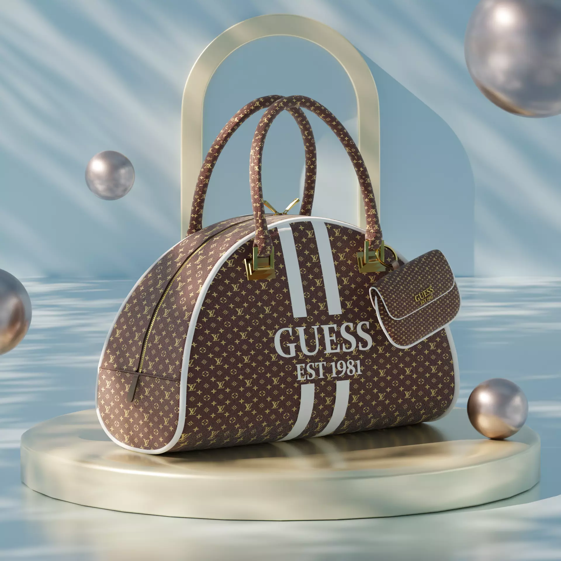 The GUESS Designer Bag 3D Model is a high-quality, realistic handbag asset created in Blender. This model features a luxury-style LV texture pattern applied on a GUESS EST 1981 bag design, with elegant gold metallic accessories and smooth, clean geometry.It’s perfect for product visualization, fashion design rendering, 3D advertising, or interior scene decoration.Rendered in Blender Cycles for a professional and polished look.Features:Realistic Design: Modeled and textured to match the look of a premium GUESS handbag.High-Quality Materials: Includes detailed PBR materials with realistic reflections.LV Texture Pattern: Premium-style leather pattern for a luxury appearance.Render Ready: Scene set up in Blender for instant high-quality renders.Clean Topology: Smooth mesh suitable for close-up visualization and customization.