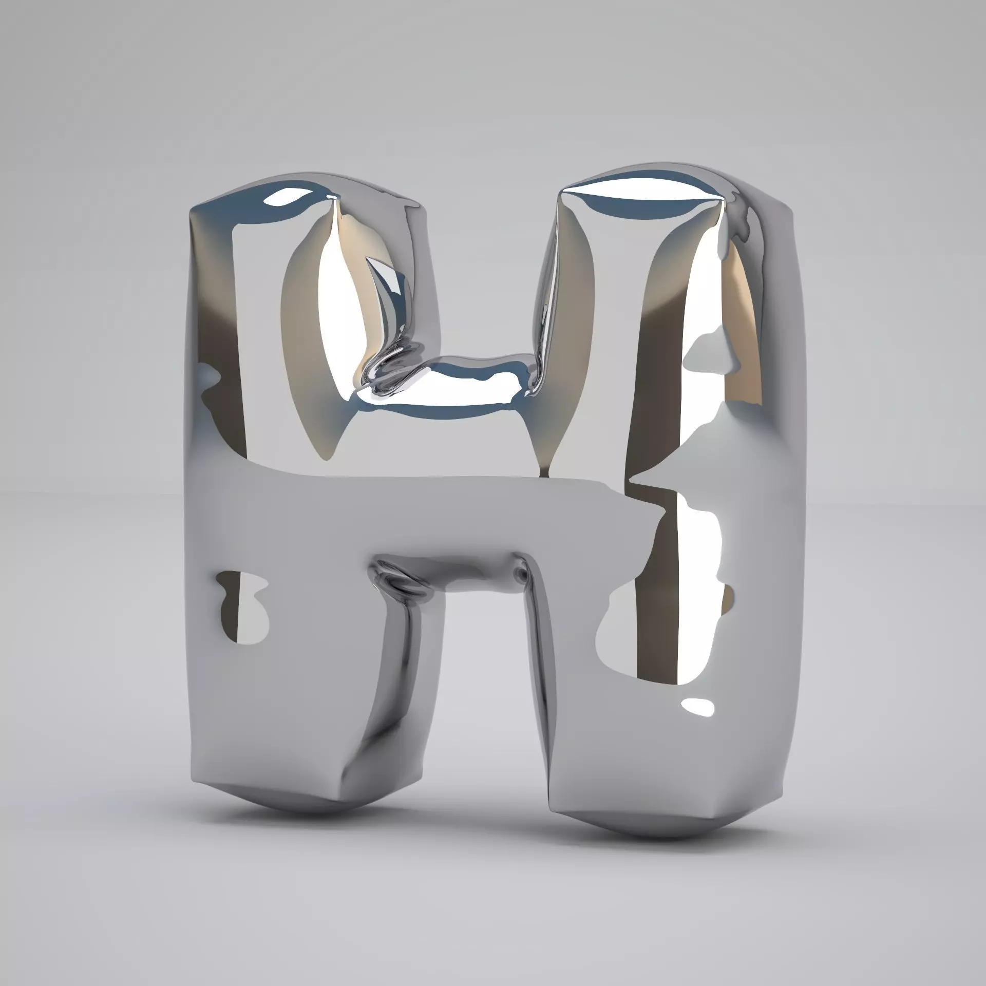 Realistic 3D Model OF Balloon H Alphabet Silver