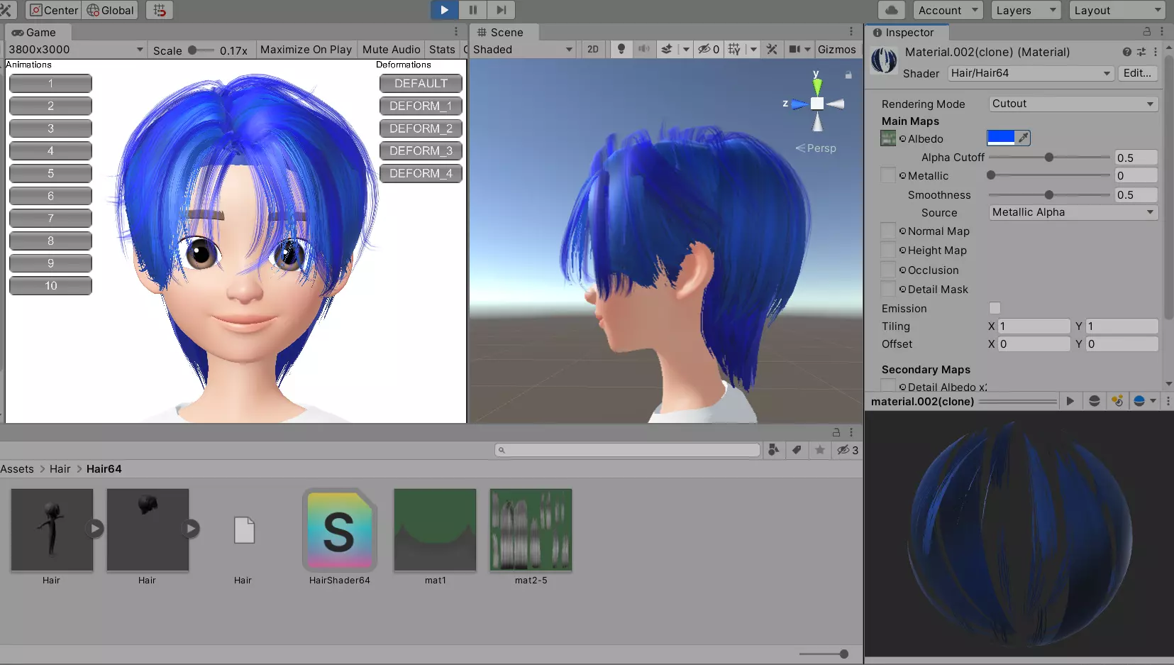 Hair 3D Model Zepeto Unity Prefab 64 Low-poly 3D model