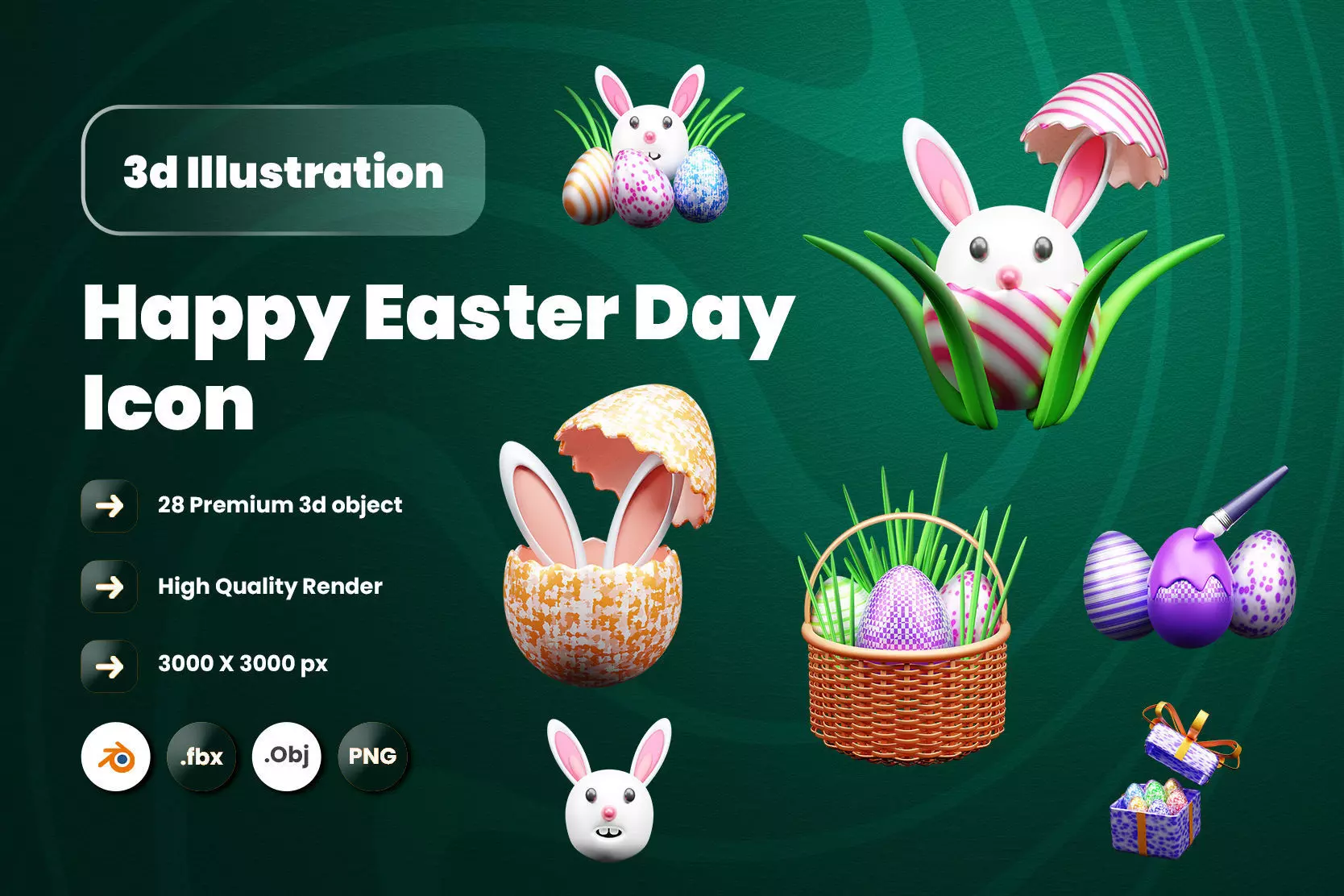 . Multiple format file.. 28 Unique 3d File. 3000 X 3000 Px. High Quality Render. Easily Edit color & Texture In Blender. Ready to Use.