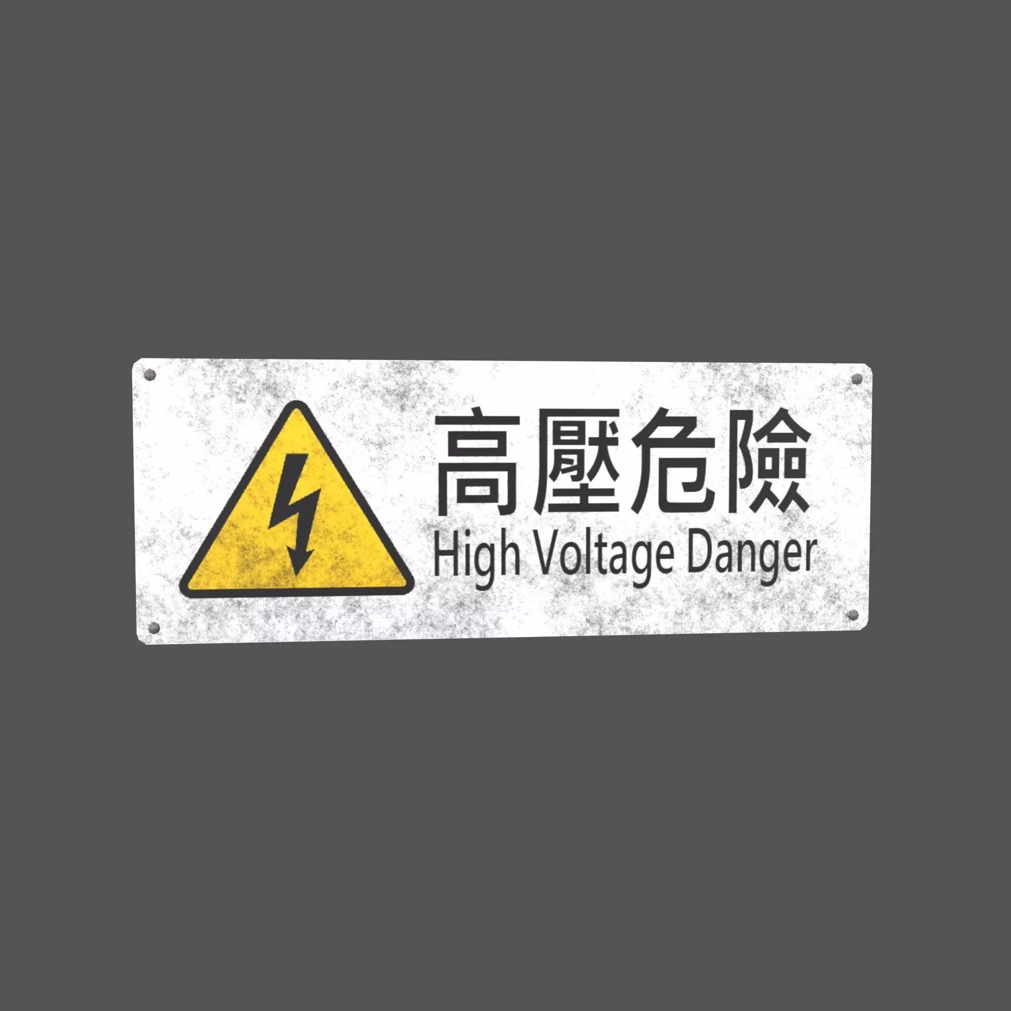 High Voltage Chinese Version Sign v1 002 Low-poly 3D model