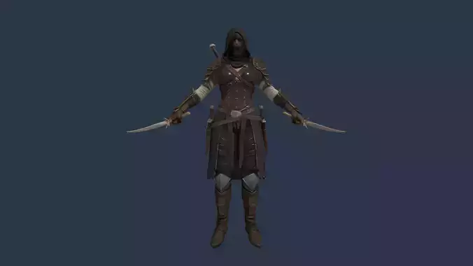Hooded armored assassin with daggers