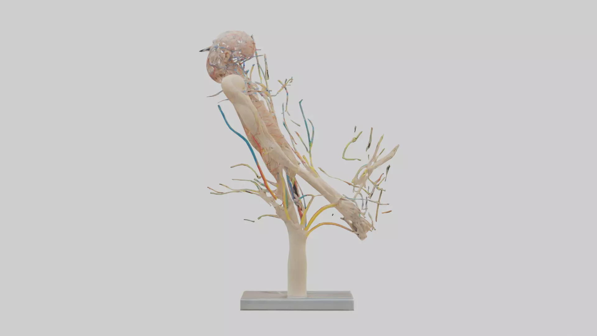 Krótki model 3D Ludzkiego Splotu Ramiennego. Przedstawia szczegółową anatomiczną reprezentację splotu ramiennego, sieci nerwów wychodzących z rdzenia kręgowego (dokładnie z korzeni nerwowych C5-T1), która zaopatruje w unerwienie ruchowe i czuciowe kończynę górną (ramię i rękę). Nadaje się do wizualizacji medycznych, anatomicznych i edukacyjnych. Dostępny w formatach FBX, OBJ, STL, GLB, USDZ i BLEND.