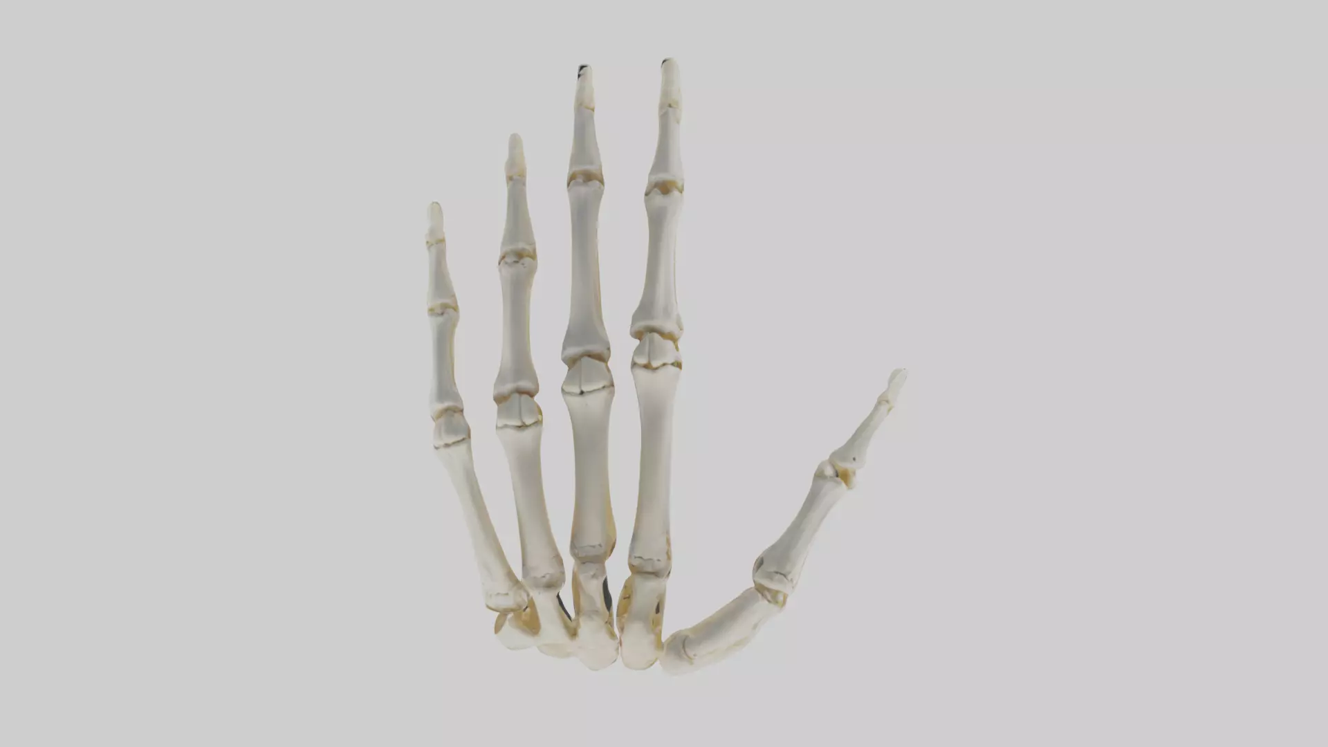 [Modelo 3D de alta qualidade do esqueleto da mão humana, ideal para visualização médica, animação e fins educacionais.] Formatos de arquivo disponíveis: FBX, OBJ, STL, GLB, USDZ, BLEND.