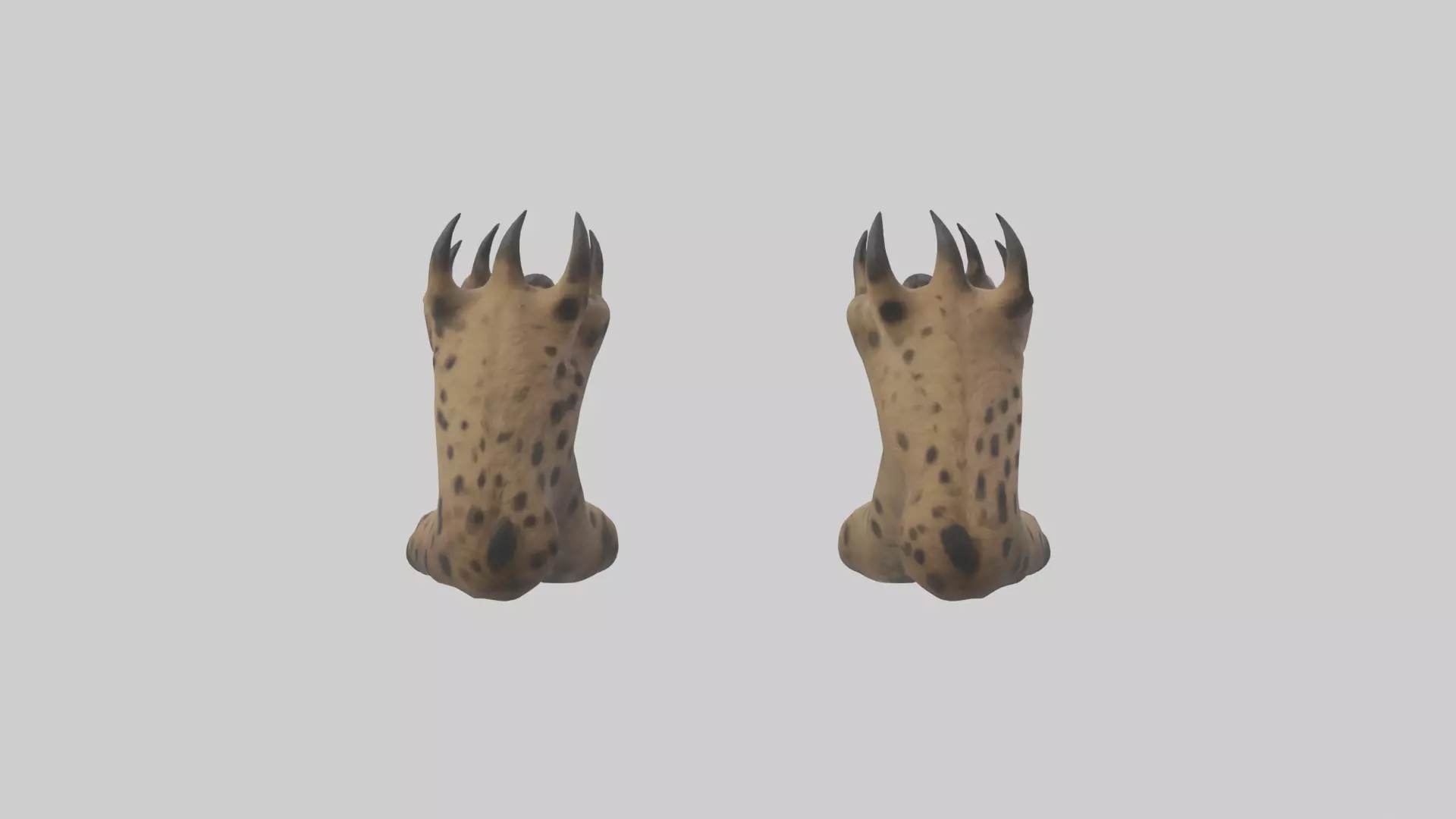 A highly detailed 3D model of hyena paws, perfect for animation, games, or educational purposes. Available file formats: FBX, OBJ, STL, GLB, USDZ, BLEND.