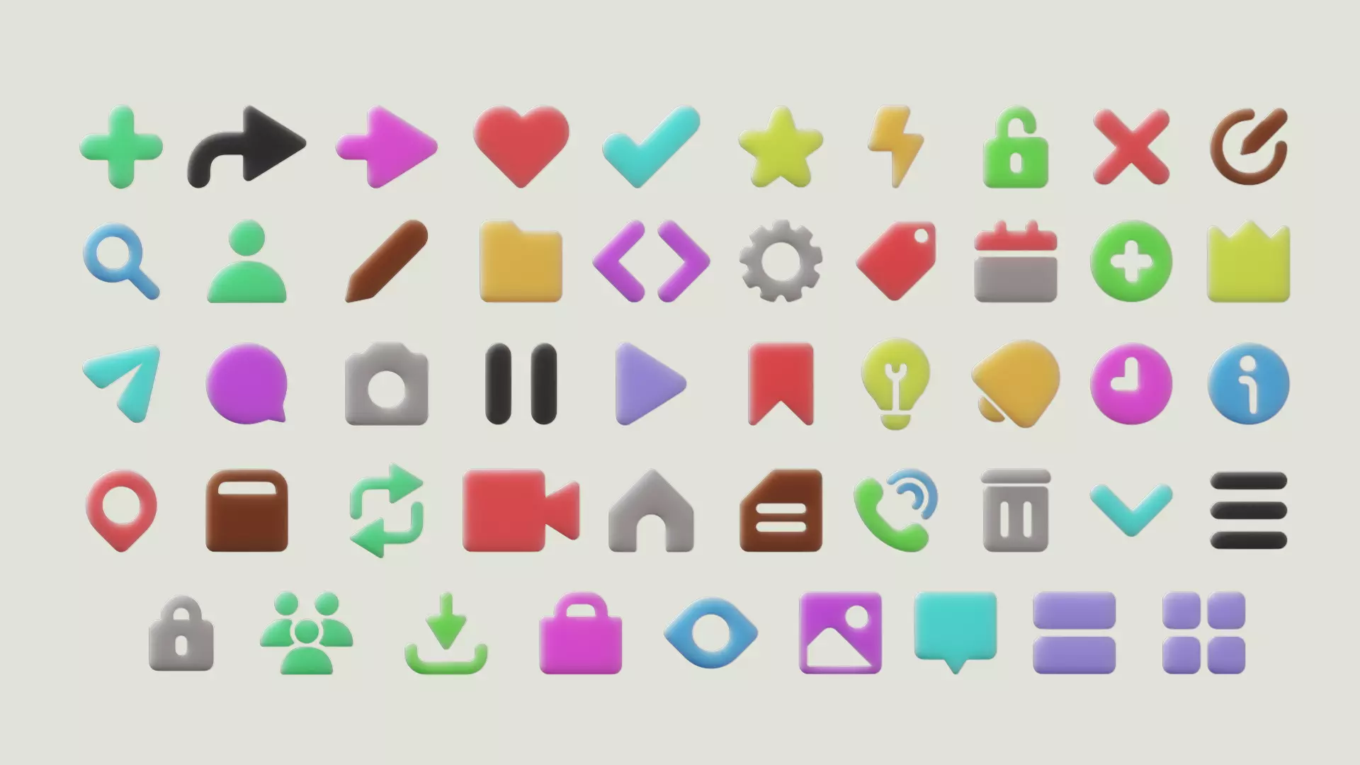 • 3D Models Kit of Icons, Modeled for Game engines, Animation Videos, Branding and ArchViz.