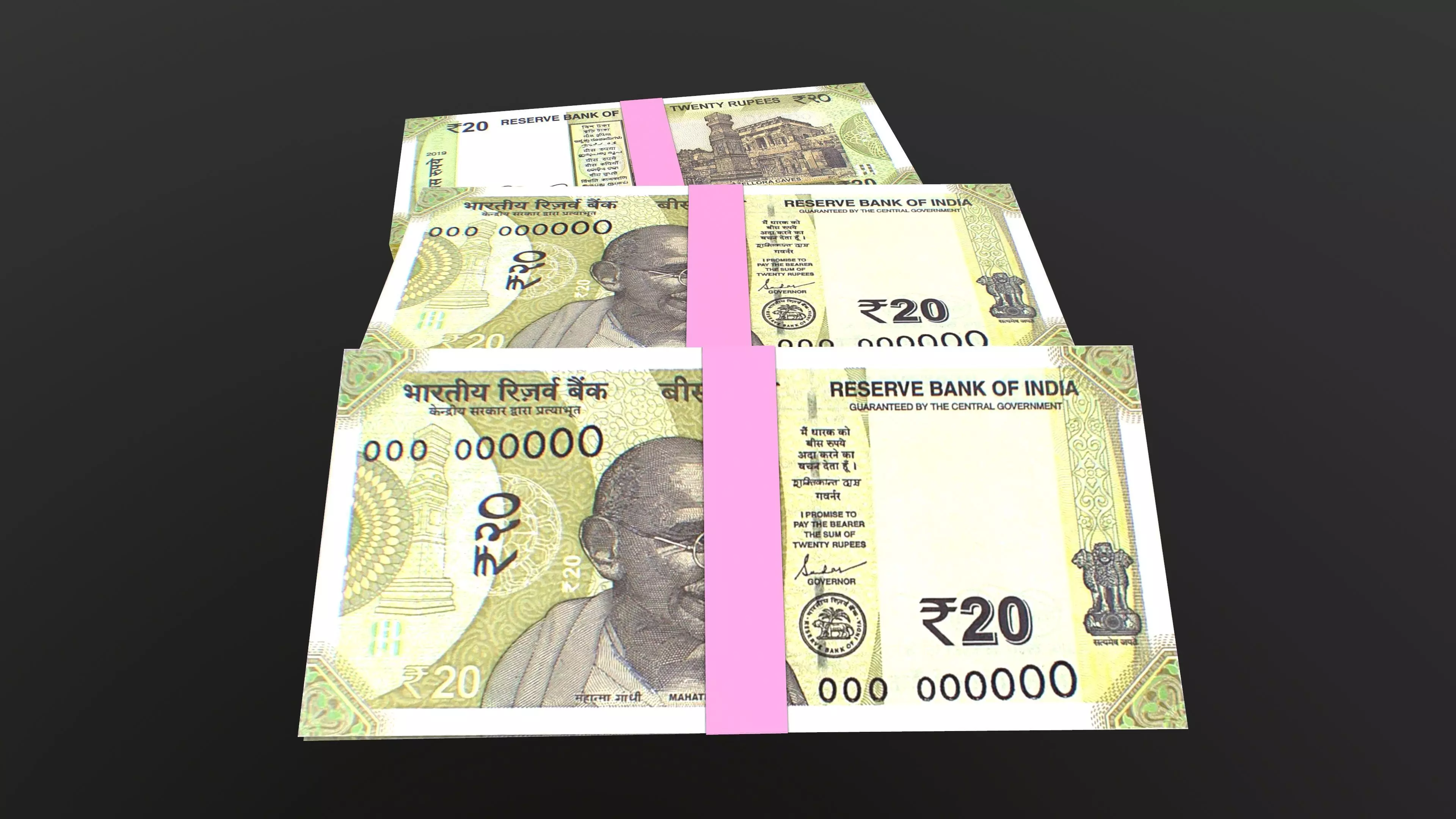 Indian 20 Note Currency Bundle AR VR PBR Low-poly 3D model
