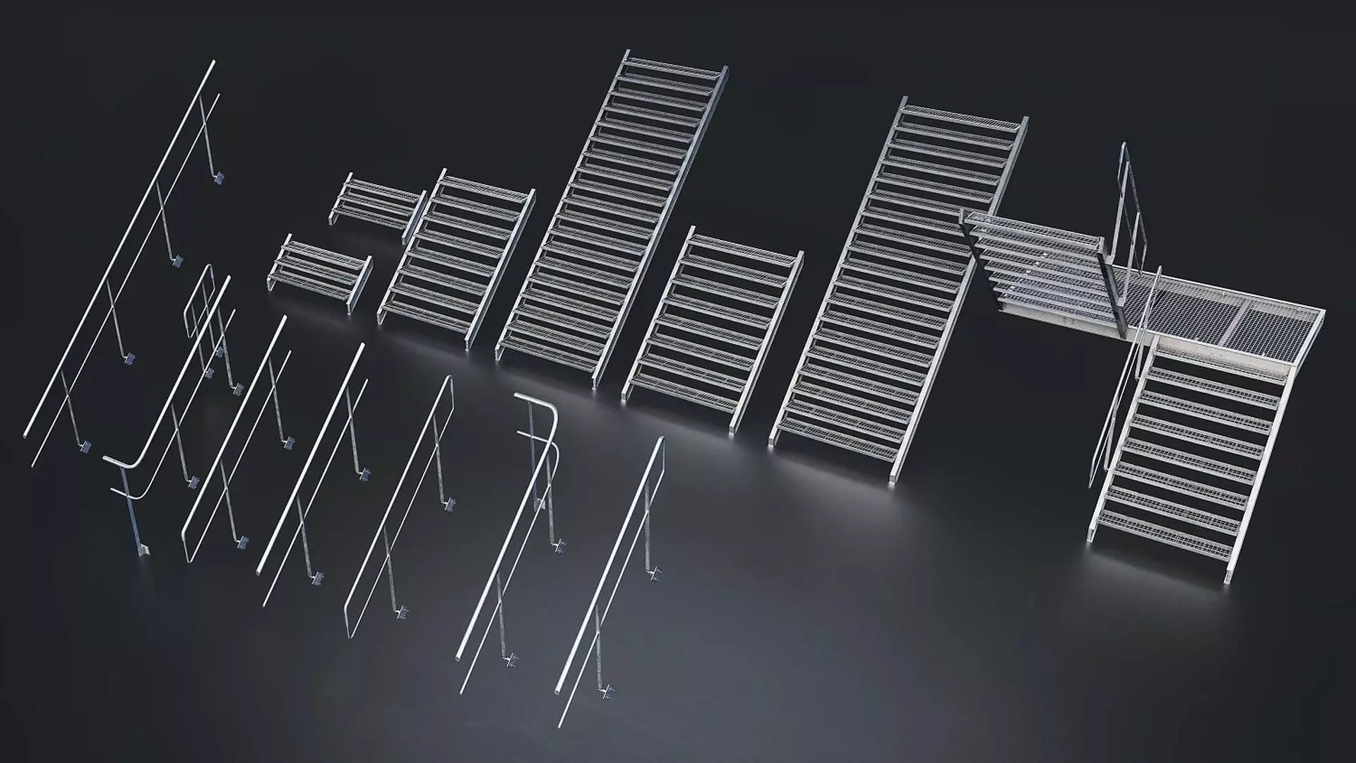 Industrial Metal Staircase Set - 2 Low-poly 3D model