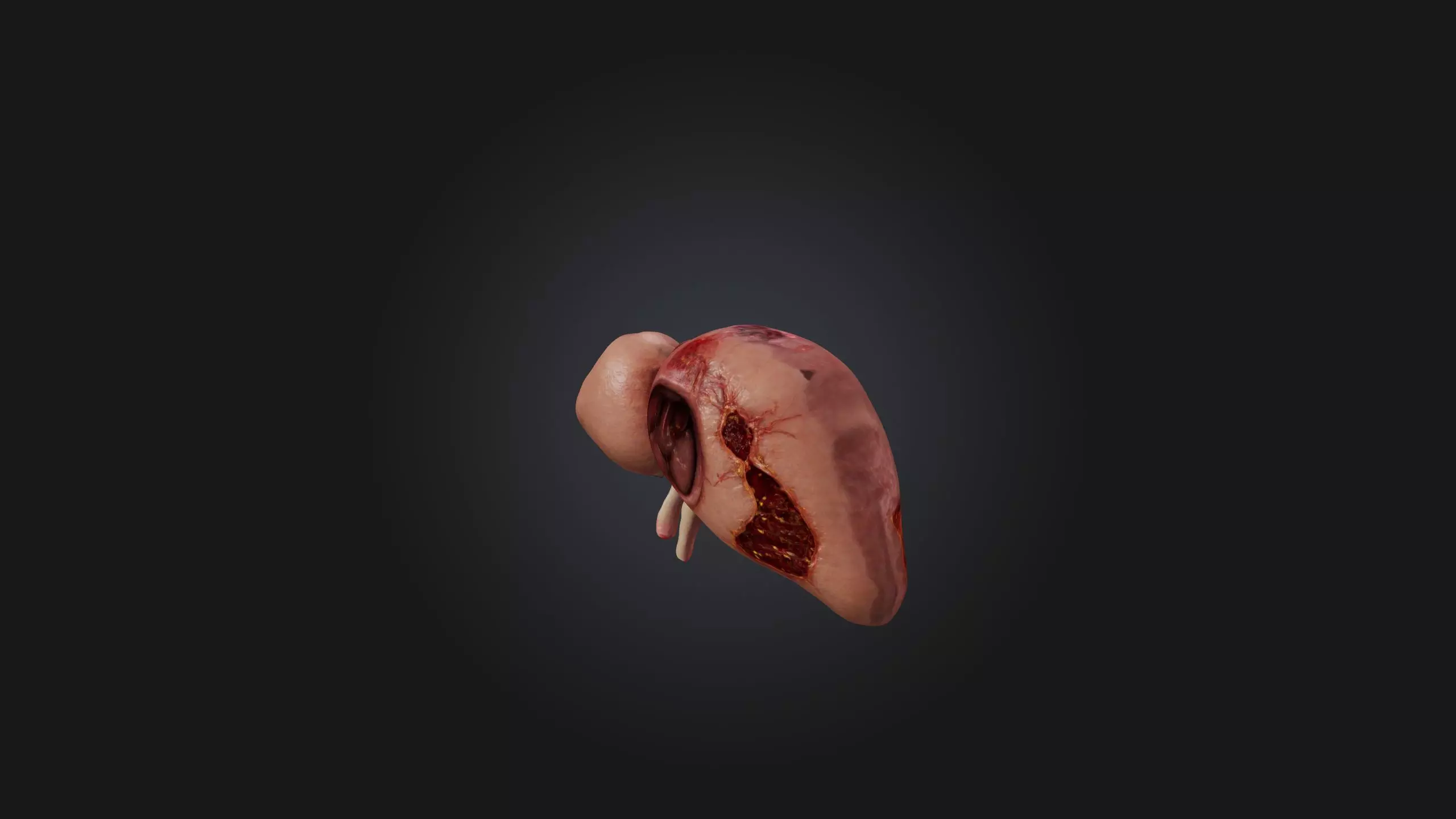 This 3D model features a highly detailed, infected liver, showcasing the structural changes that occur during liver infection. The model highlights areas of inflammation, tissue damage, and fluid accumulation, capturing the effects of diseases such as hepatitis or cirrhosis. Ideal for medical studies, educational simulations, or healthcare-related projects, this model offers an accurate representation of liver pathology and can be used for training or clinical purposes.