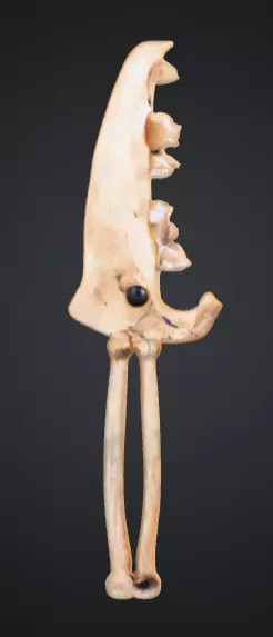 The Jawbone Dagger is a brutal and primal 3D weapon model crafted from the remains of a predator’s jaw, transformed into a deadly close-combat blade. Its design exudes raw savagery—jagged teeth remain embedded along the edge, forming a natural serrated weapon capable of tearing through flesh and armor alike. The bone surface is weathered, cracked, and stained, reflecting countless battles and the passage of time.