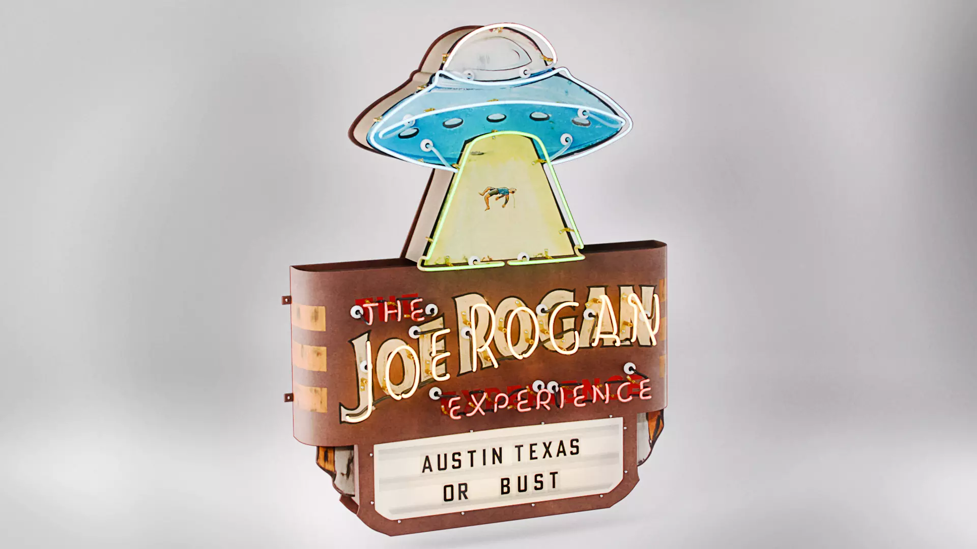 Joe Rogan Experience (JRE) Neon Sign model with PBR materials, based on a semi-lowpoly beveled workflow. Optimized for realism/photoreal scenes (e.g. interior archviz), in some instances also compatible with VR/AR projects, and suitable as a game asset, if desired.