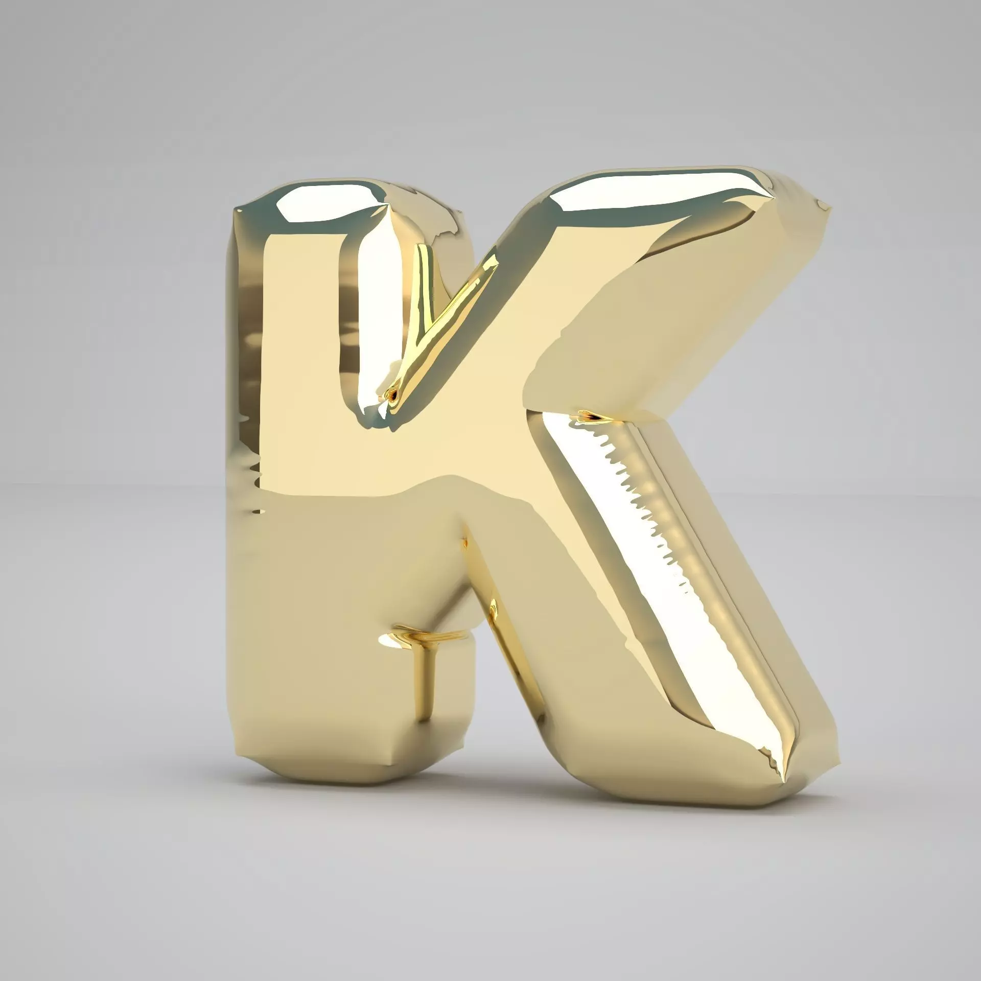 Realistic 3D Model OF Balloon K Alphabet Gold