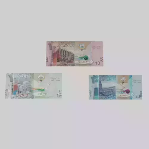 3 difrrent Kuwait currency 3d model ready to use in any software and any type of project you want