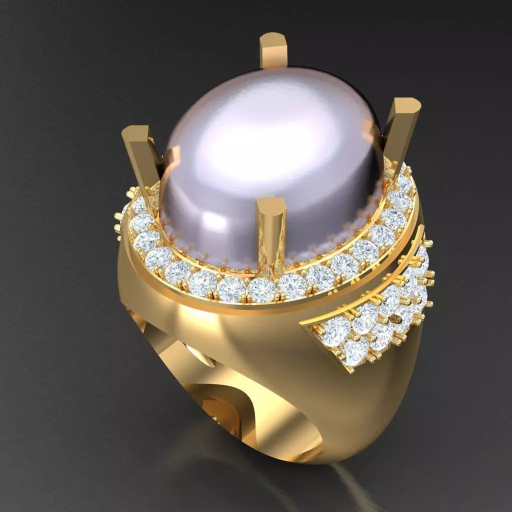 Light Gold Diamond Men Ring 2MR031 3D model