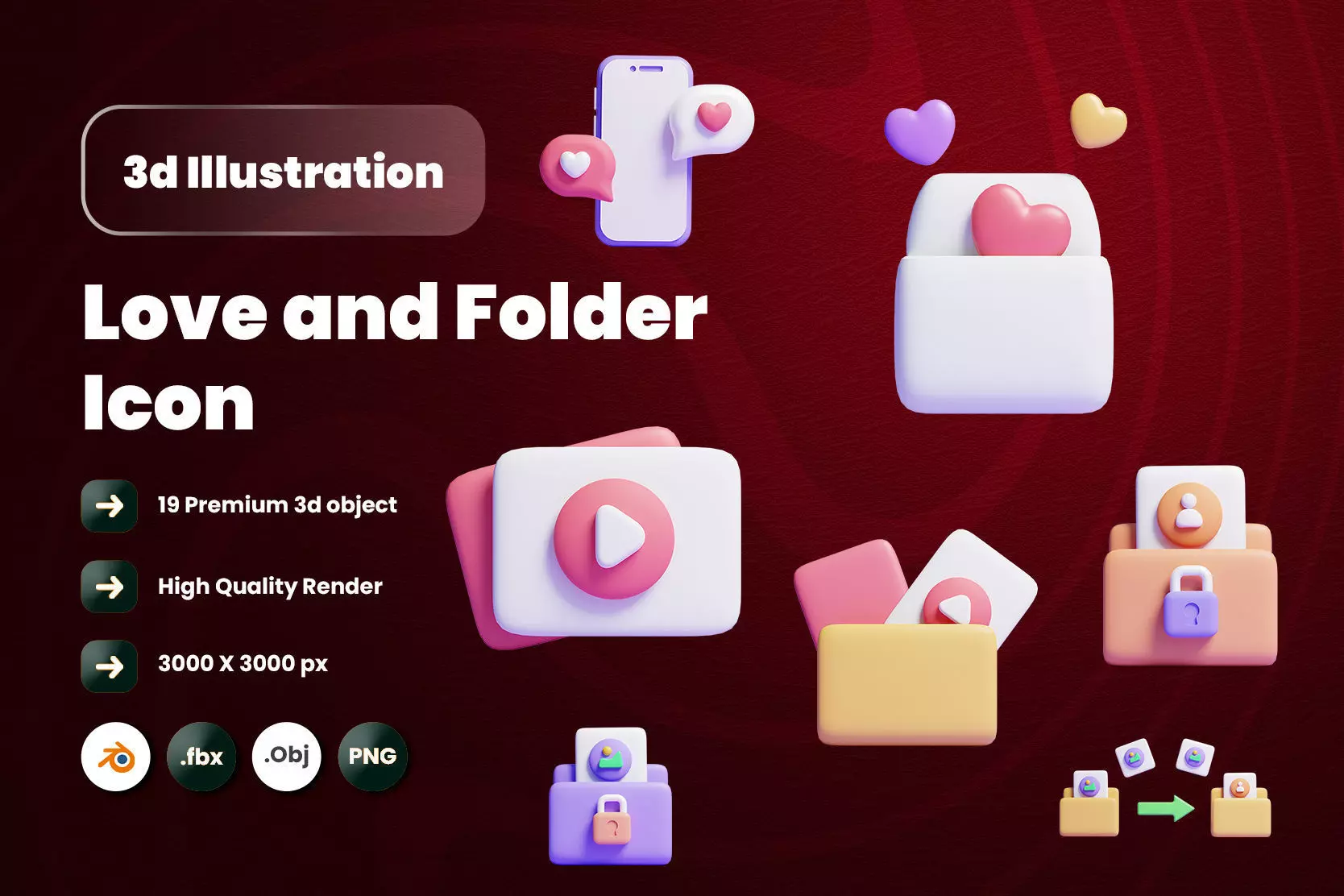 Love and Folder 3d Illustration Icon Pack for design need, apps Design, web design,social media advertising, presentation Design, poster Design, Ui Design,content creator, and other.