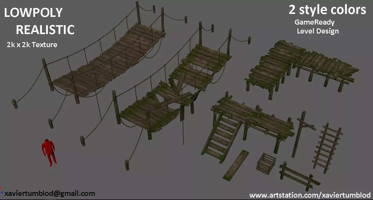 lowpoly gameReady - Best for Environment ARt & level Design2 color styles each - Clean and Mossy