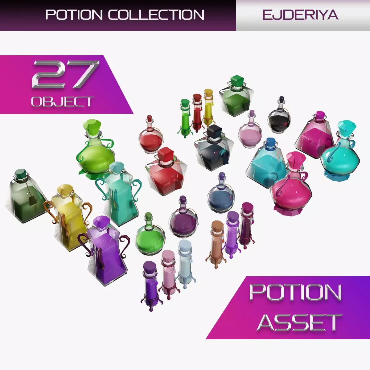 27-PIECE LOW POLY POTION BOTTLE ASSET