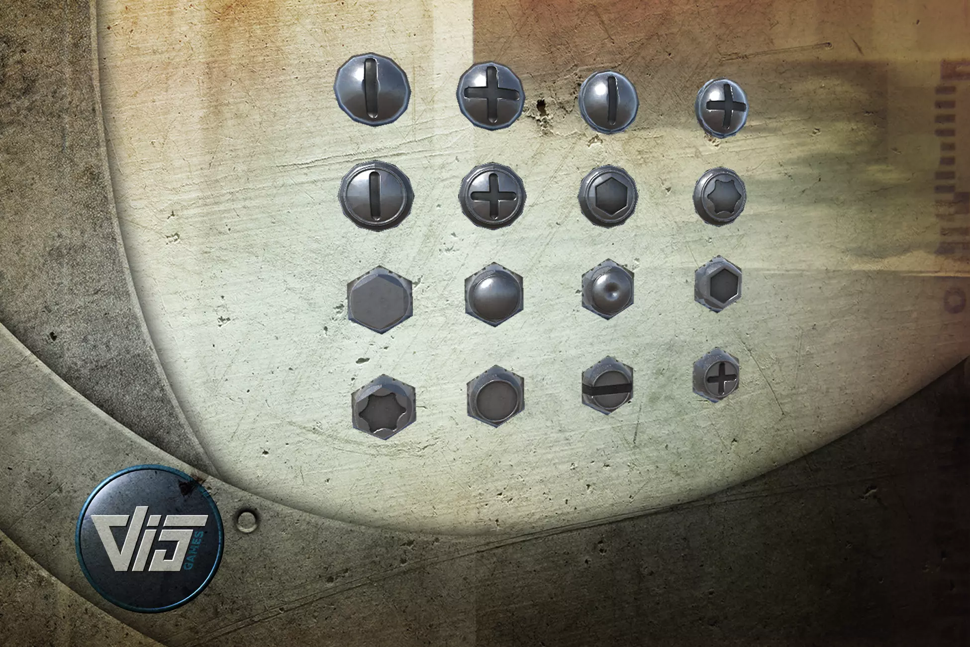 This package contains 16 different screwhead. All are very low-poly and use PBR textures