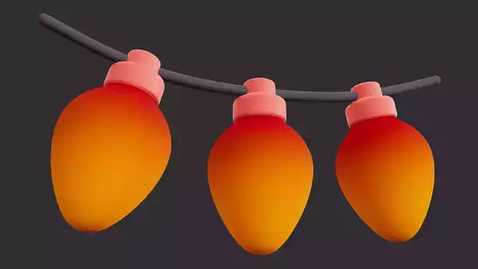 A collection of three classic low-poly string lights featuring glowing orange-red bulbs connected by a dark wire, perfect for decorating buildings, trees, or interiors in a festive 3D environment. The simple design ensures high optimization for background detailing in games and simulations.