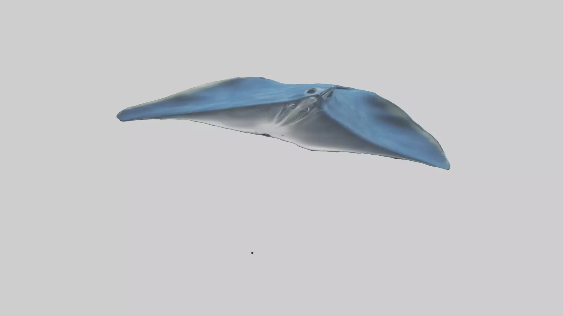 蝠鲼在水下优雅滑行的简洁 3D 模型。描绘了一种属于蝠鲼科的大型鳐鱼——蝠鲼在水下优雅滑行或游泳的典型姿势的 3D 模型。这通常包括其巨大的翼状胸鳍展开并轻轻拍动或伸展开以轻松滑行。该模型应准确地表现蝠鲼扁平的身体形状、头部前方的宽阔嘴巴以及从嘴巴两侧向前突出的头鳍。皮肤的纹理和颜色也应表现出来,其背部通常为深色,腹部为浅色。水下环境可以通过水波纹、光线或可能暗示海洋的极简背景特征来巧妙地指示。该风格很可能是写实的,以捕捉蝠鲼雄伟而优雅的自然之美。细节程度应足以区分该物种。适用于海洋生物的教育资源、水族馆模拟、水下纪录片或可视化,并可能用于专注于海洋环境的游戏或虚拟现实体验。提供 FBX、OBJ、STL、GLB、USDZ 和 BLEND 格式。