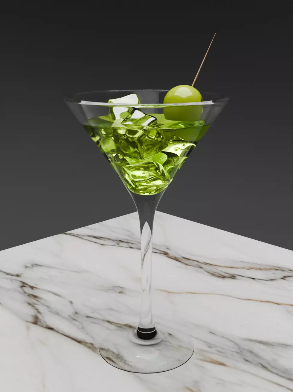 Every detail has been meticulously crafted, from the transparent glass to the texture of the ice and olive. The model is perfect for both professional designers and enthusiasts of high-quality 3D graphics.