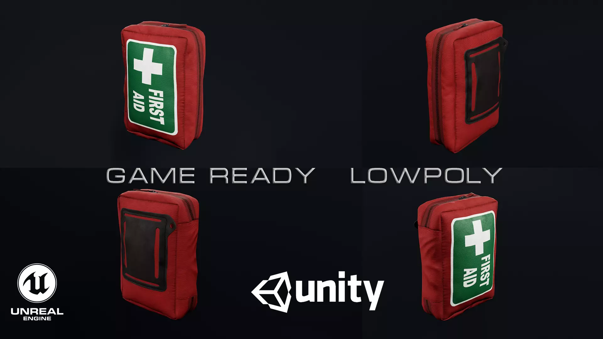 First Aid pack Low-poly 3d model ready for Virtual Reality (VR), Augmented Reality (AR), games and other real-time apps.
