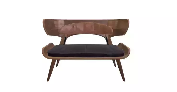This high-quality 3D model represents a refined mid-century modern lounge sofa, characterized by its elegant curved wooden frame and minimalist yet inviting silhouette. The design draws inspiration from classic modernist furniture, featuring smooth, organic lines and a balanced structure that emphasizes both comfort and visual harmony. The carefully shaped backrest and armrests seamlessly flow into the main body, creating a timeless piece suitable for a wide range of interior styles.