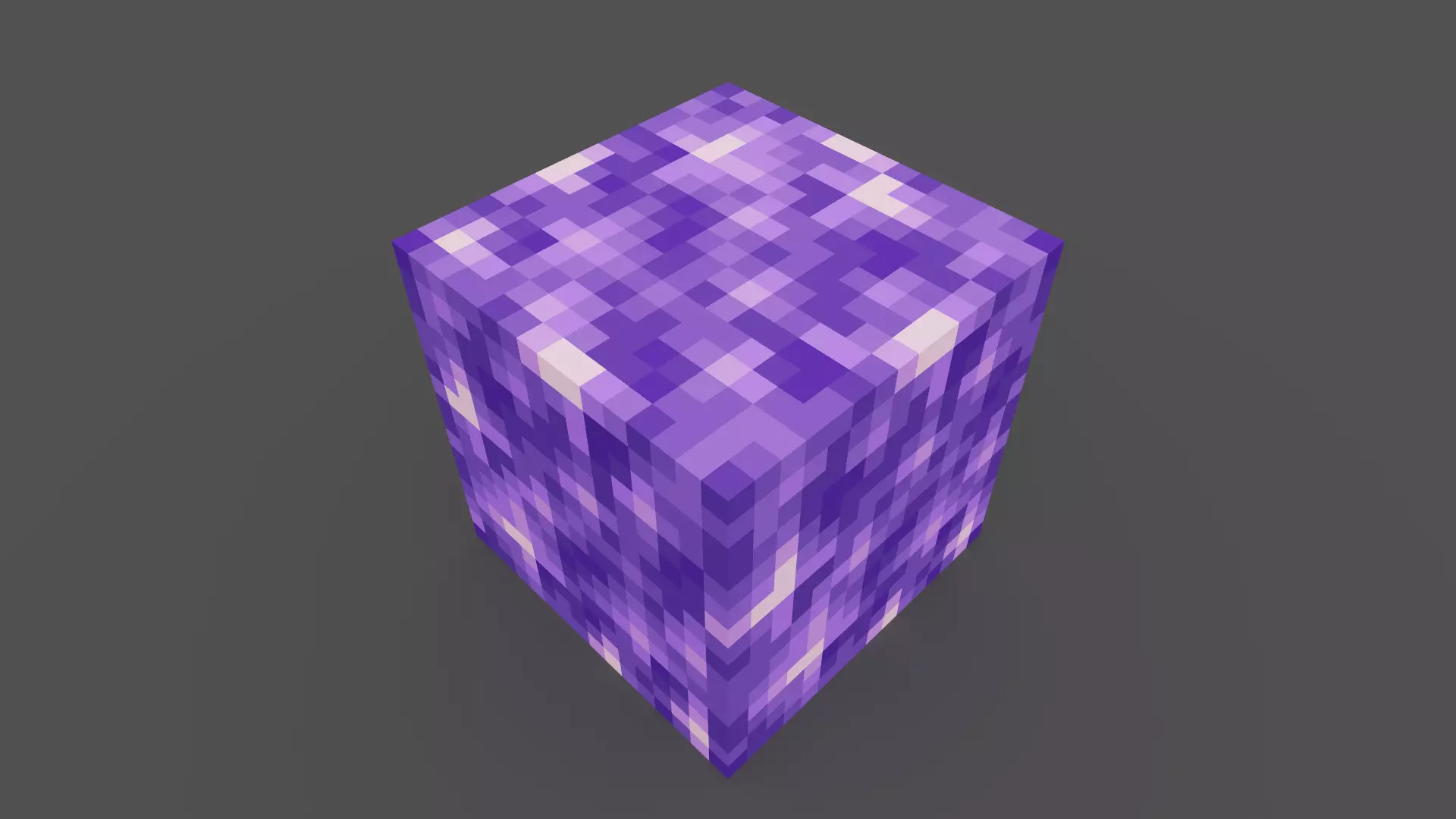 Amethyst block model which was made of amethyst block's texture in real MineCraft. You can open and edit it as a normal model in 3D software like Blender, or you can edit it in a voxel editor like MagicaVoxel.