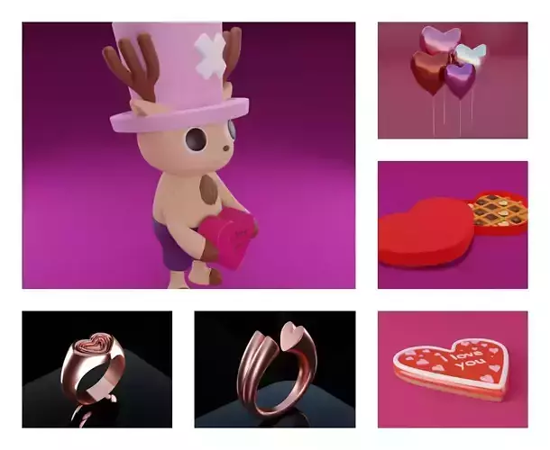 I am glad to present you a set of 3D models for the holiday of Valentine's Day, if you are looking for a model for Valentine's Day that will be needed for various purposes, including decoration and other uses, then this set of models is ideal for you and the models are designed for your projects, animation, advertising, videos, themed projects, holiday projects, etc.
